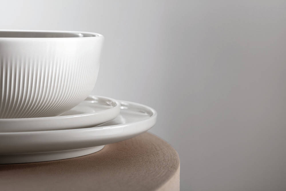 在各富特色的餐具系列中,白色邂逅极具辨识度的表面质感,焕发出无限的美学可能。